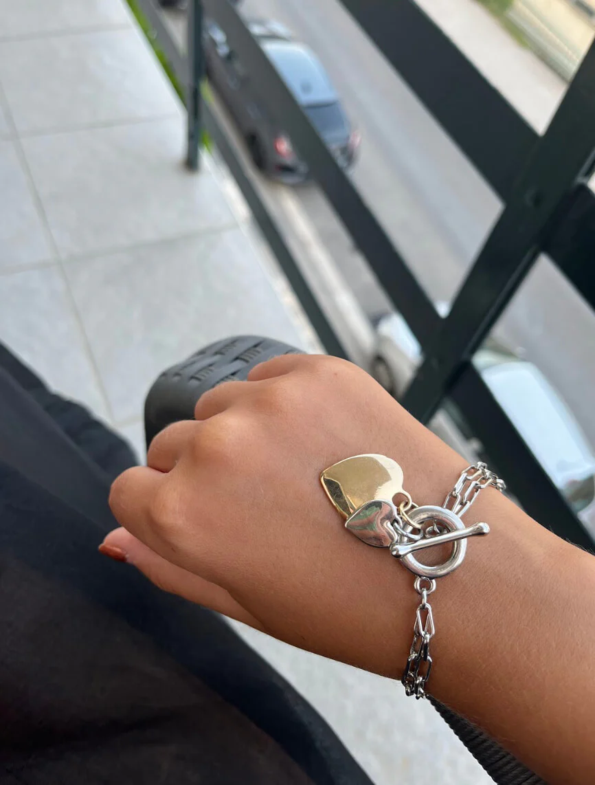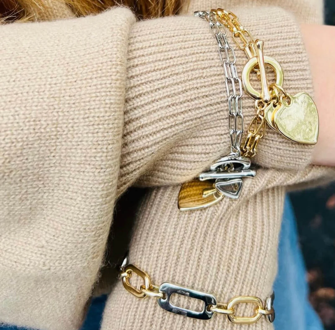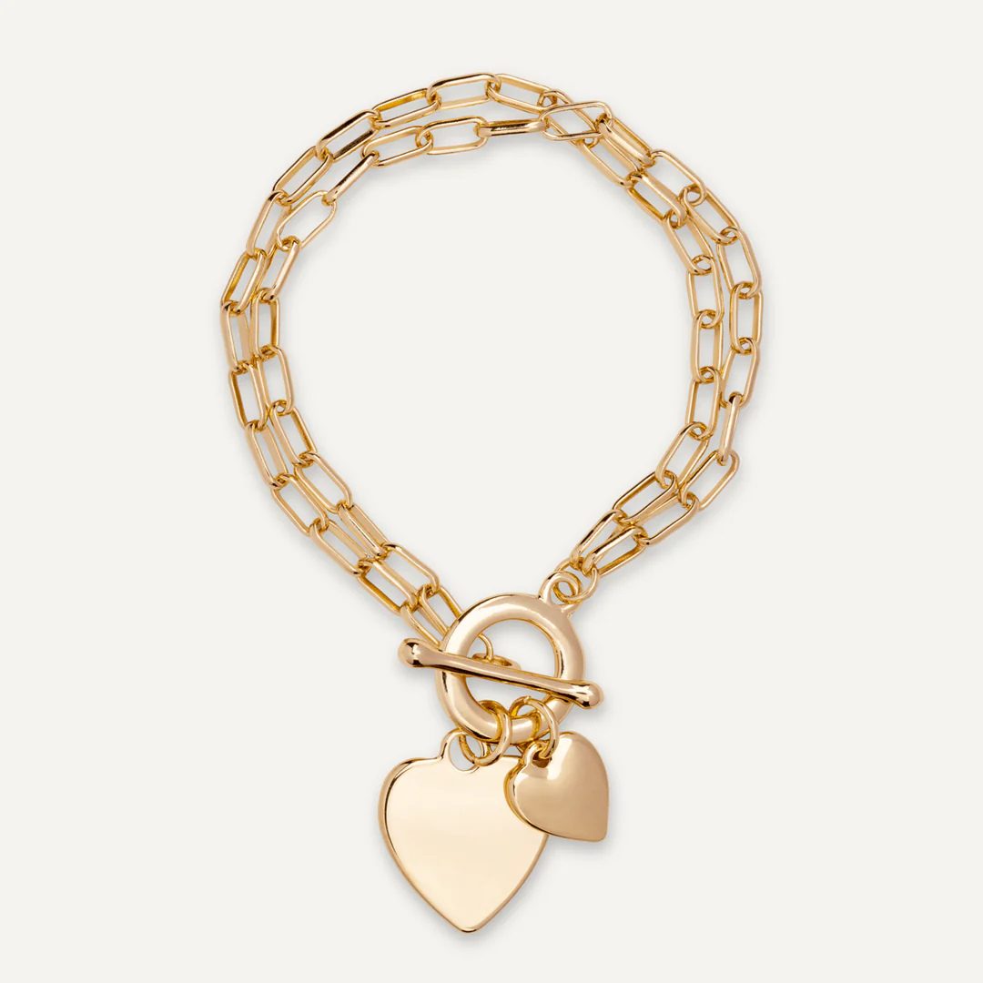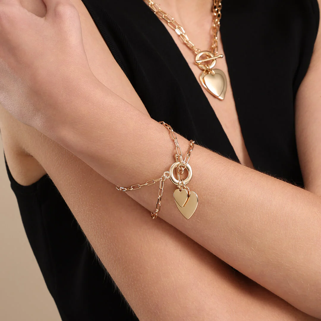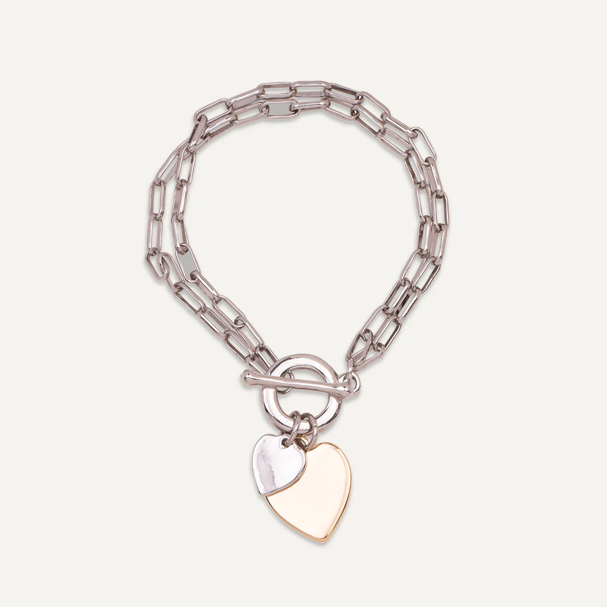 Emily Heart and Star Elasticated Bracelet In Silver & Gold-Tone